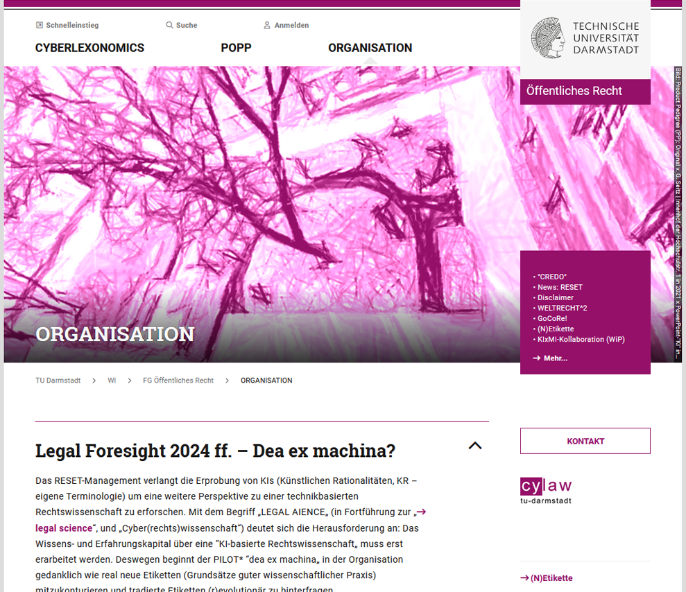 Das Archiv stellt ein historisches Abbild des Internetauftritts des Fachgebietes Öffentliches Recht an der Technischen Universiät Darmstadt dar. Das historische Abbild ist nachfolgend interaktiv und als Bildergalerie betrachtbar.